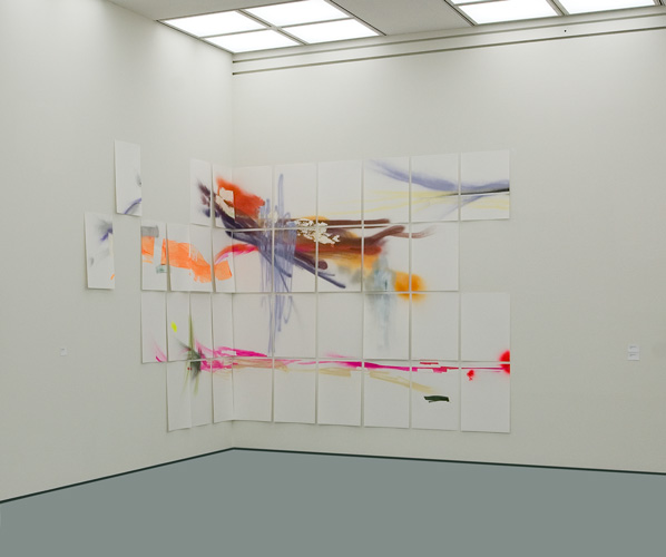 ![]() Ausstellungsansicht, o.T., Galerie Patricia Ferdinand-Ude, Mischtechnik auf säurefreiem Papier, 2004 Format 275 cm x 317 cm, 21 Bögen á 70 cm x 50 cm |