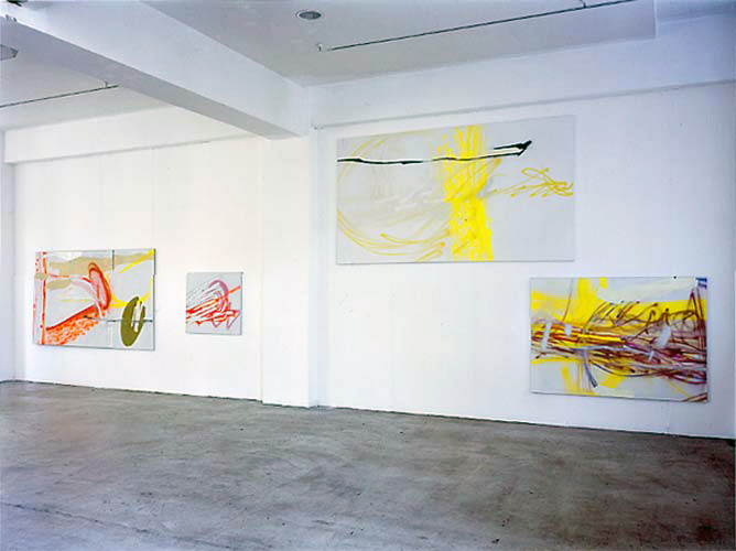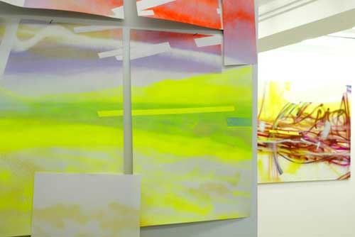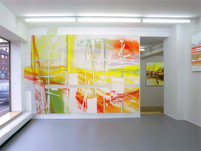 ![]() Ausstellungsansicht Trendwände, Kunstraum Düsseldorf, 2003 Mischtechnik auf Leinwand und Nessel |