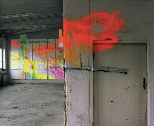 ![]() Trendwände, Kunstraum Düsseldorf, 2003 beidseitig bearbeitete Papierrolle |